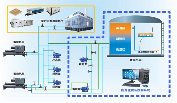 峰⾕电蓄能系统是充分利⽤峰⾕电价差,晚上在电⼒低⾕时利⽤机组制取冷(热)⽔储存,通过设备⾃动切换在⽩天电价⾼峰期将储存的冷(热)通过⽔循环释放,⽤于建筑物或⽣产⼯艺的部分使⽤,可降低运⾏成本30%以上,提⾼空调设备的利⽤率,同时可减少电⼒装机容量,实现电⼒移峰填⾕。 |